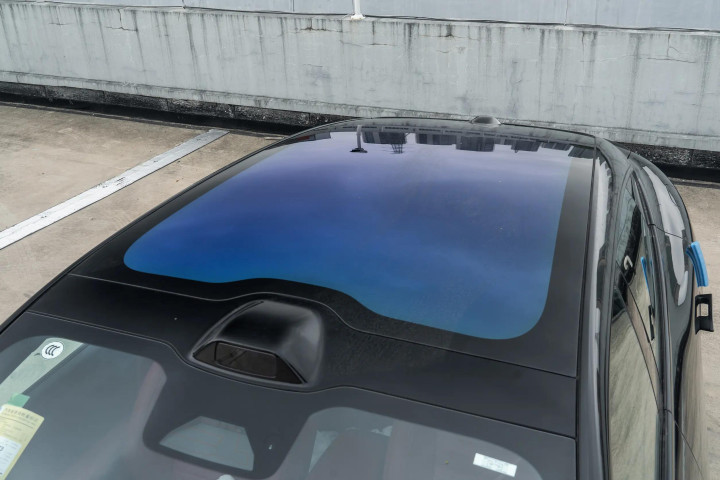 车身侧面特别耐看,1.36 的宽高比搭配 2940mm 的轴距,显得又低又宽,跑高速的时候稳定性不错。从车头到车尾有条 “引力线” 腰线,光影下看着像肌肉线条,很有动感。隐藏式门把手和封闭式轮毂不仅好看,还帮着把风阻降到了 0.23Cd,对省点电有实际作用。
