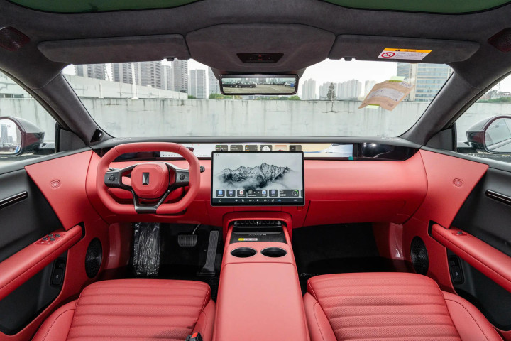 坐进车里给人感觉是 “扎实”,没什么廉价塑料味。中控台是往驾驶员这边偏的,操作起来很顺手,悬浮大屏和全液晶仪表连在一起,科技感够了还不花哨。
